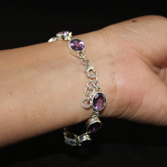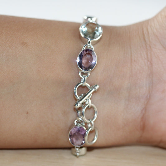 Amethyst, Topaz and Green Amethyst Gemstone Bracelet