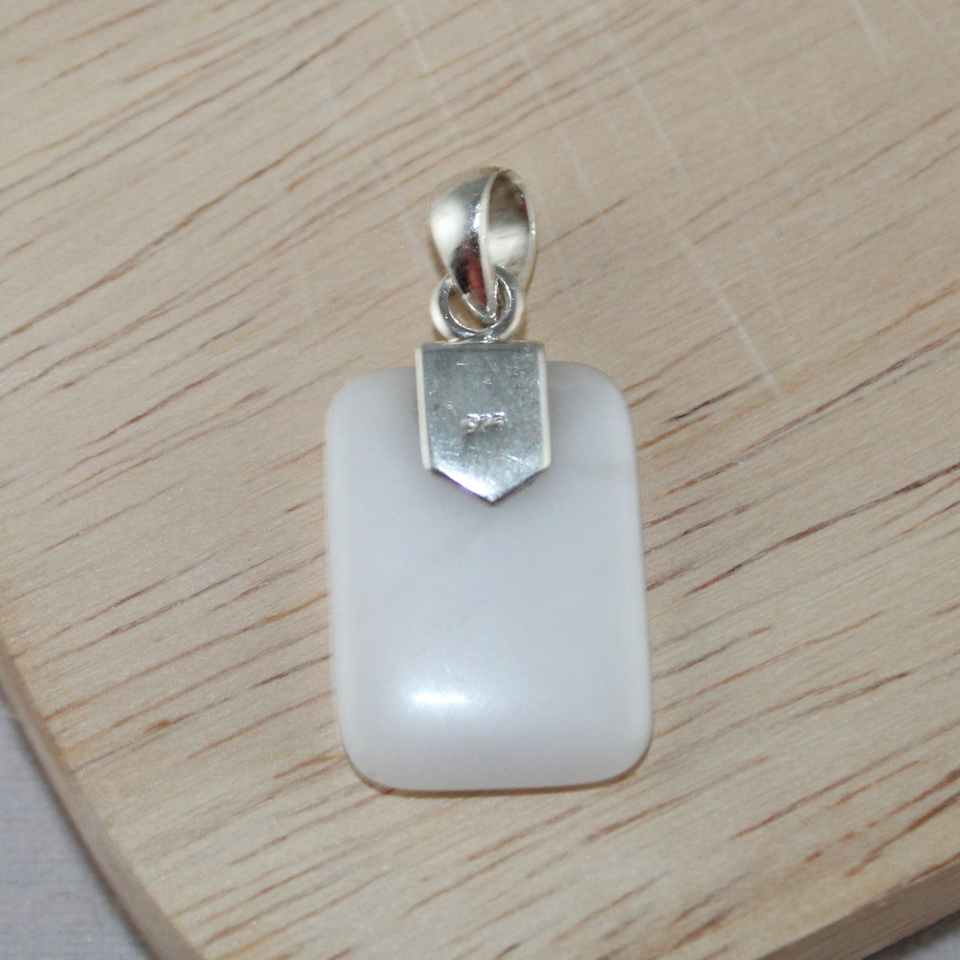 Graceful and understated, the Moonlight Whisper pendant radiates quiet elegance with its soft white opal gemstone set in polished sterling silver. The rectangular design and minimalist silver detail make it a timeless everyday piece that pairs effortlessly with any outfit.